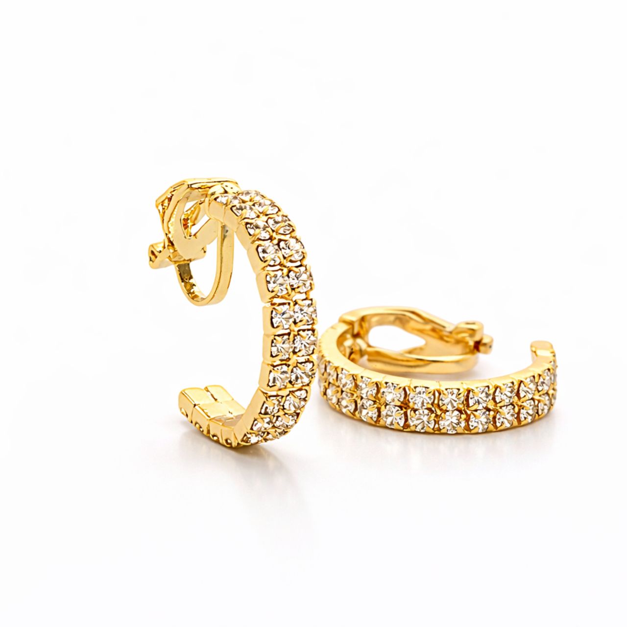 Produzidas em metal banhado a prata e com delicados cristais aplicados, essas argolas combinam leveza e sofisticação em cada detalhe. Seu sistema de pressão com clipe confortável garante firmeza durante o uso, mesmo por longas horas, sem causar incômodo.