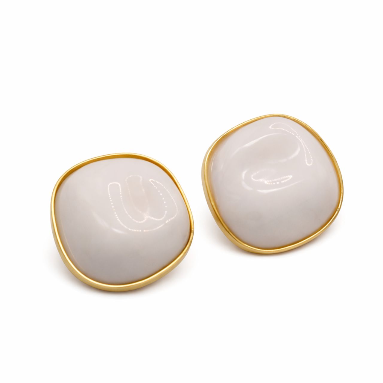 Elegante e contemporâneo, este brinco de pressão redondo orgânico branco combina formas suaves com acabamento sofisticado, resultando em uma peça atemporal e extremamente confortável.
