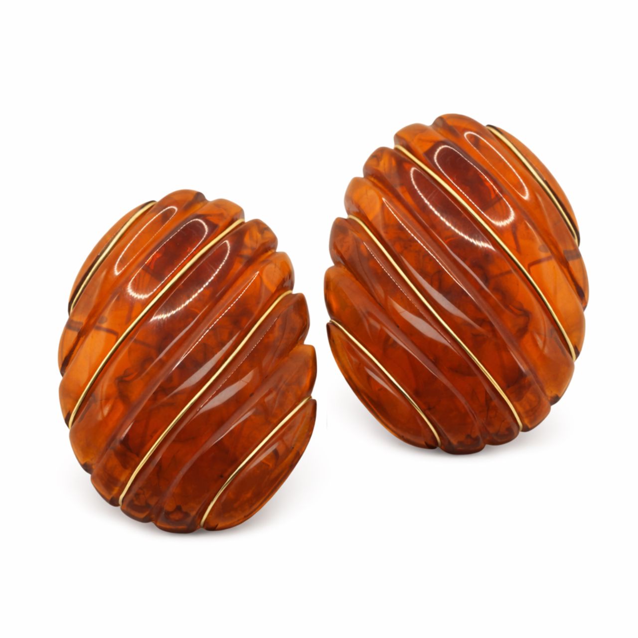 Seu design escultural em acrílico com efeito tartaruga apresenta curvas orgânicas em relevo, atravessadas por delicados filetes dourados que criam movimento, profundidade e sofisticação.
