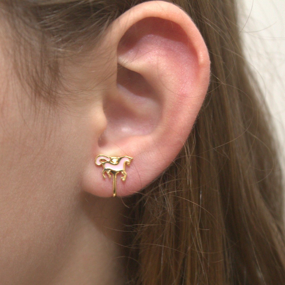 Confeccionado em metal banhado a ouro 18K ou prata 925, combina brilho sofisticado e durabilidade excepcional. O design lúdico em formato de cavalinho rosa traz um toque divertido e delicado, ideal para complementar o estilo infantil de forma única.