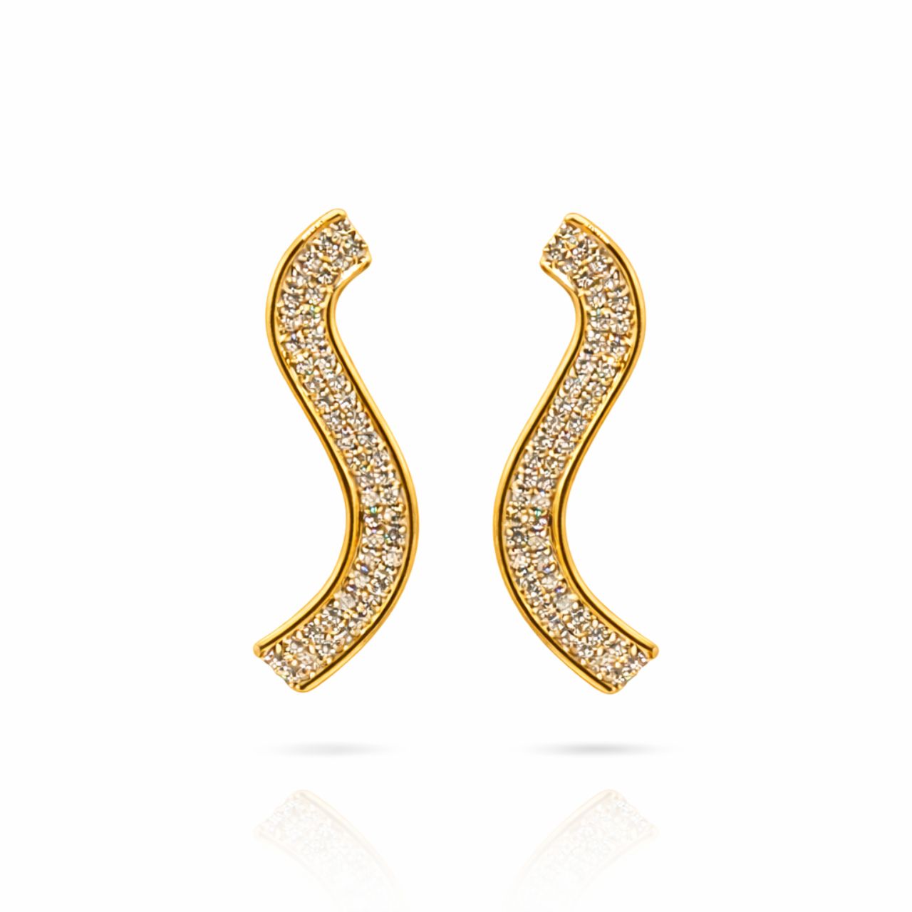 Seu design em forma de "S" acompanha a linha da orelha, valorizando o contorno do rosto com delicadeza e imponência. Totalmente cravejado em microzircônias, proporciona um brilho contínuo e moderno.