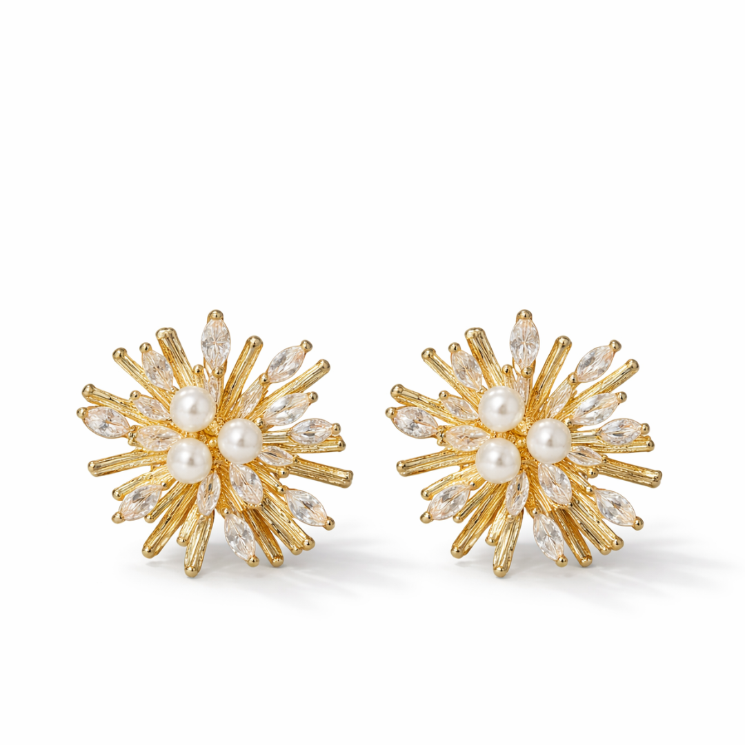 Brinco BP Lumière Étoile em banho no ouro 18K com pérolas e zircônias.