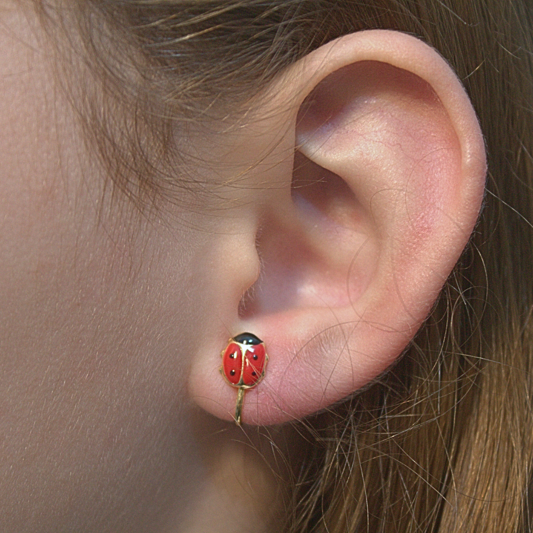 Confeccionado em metal banhado a ouro 18K ou prata 925, oferece brilho duradouro e qualidade superior. O adorável design de joaninha, pintado com cores vibrantes, traz um toque de alegria e delicadeza ao visual infantil.