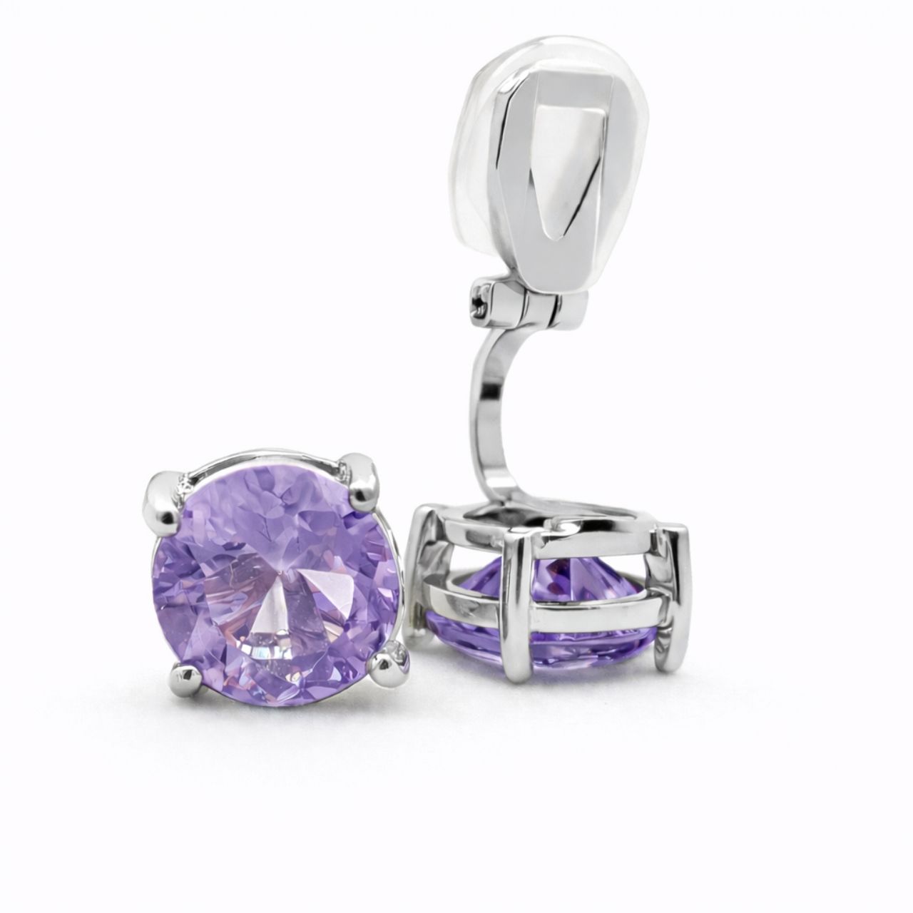 O Brinco de Pressão Solitário BP com zircônia lilás e banho em ródio branco é uma joia leve, feminina e cheia de frescor. Seu tom lavanda claro expressa suavidade e harmonia, enquanto o acabamento em ródio branco confere um brilho sofisticado e moderno à peça.